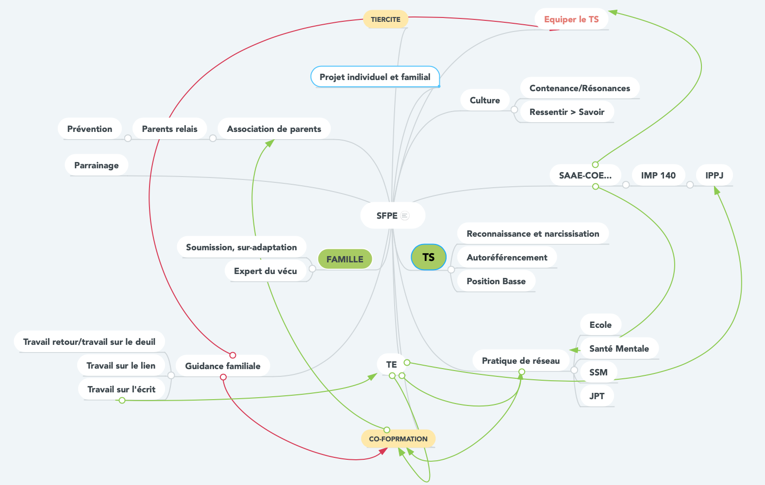 pedopsy ont des fonctionnements aussi distants que ne le sont leurs pouvoirs de tutelles les uns par rapports aux autres. De plus ils fonctionnent entre eux en sysmétrie comme dans les rapports des institutions avec les familles. Une réorganistion de l’accueil familial, AF, à l’instar de ce qui se fait dans les PFS serait bienvenue. Leurs paroles doit se libérer, elle doivent trouver ce processus intervisionneldont ont besoin les TS. Avec les jeunes qui arrivant à la puberté escaladent dans les troubles de l’attachement [9].